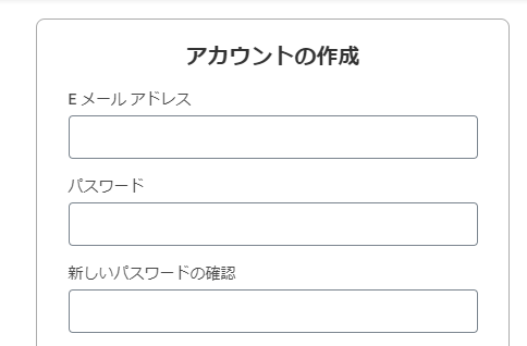 4. 「アカウントの作成」をクリックし、メールアドレス・パスワードを設定してください。パスワードには、以下が含まれている必要があります: