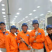 製造ラインの運転には複数の先輩達と一緒にチームとして取り組みます。日常業務を通じて叩き込まれるのは「品質と安全」に対する徹底的な管理意識…なぜか?自分・同僚・お客様・商品や会社に対する信頼を守るために自分がやるべきことは何か?を考えることの大切さを理解することになります。